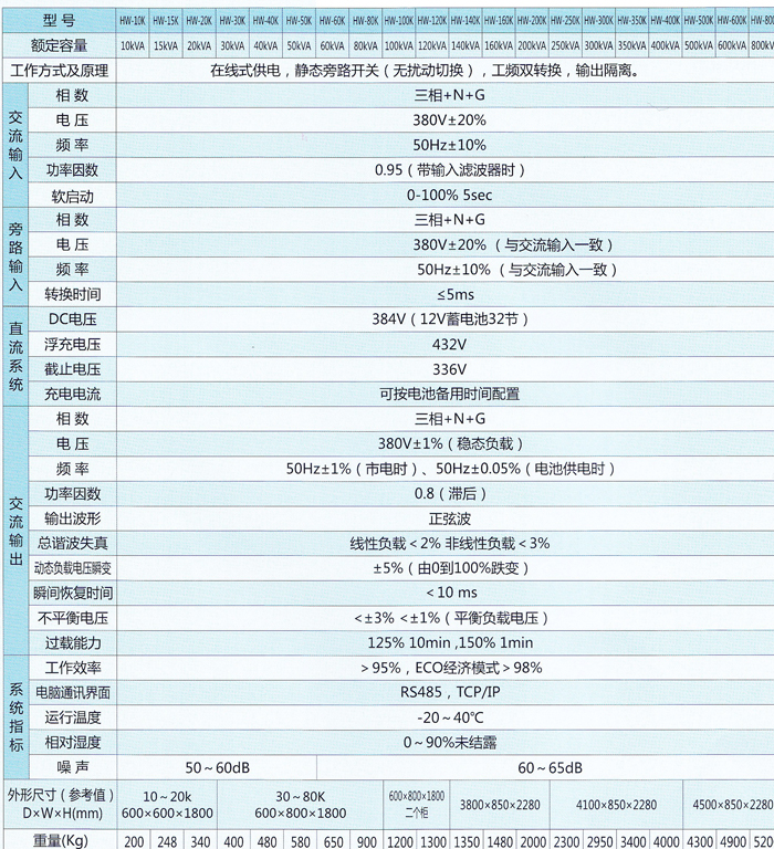 HW系列数字化在线工业级UPS (三进或三进型,10~